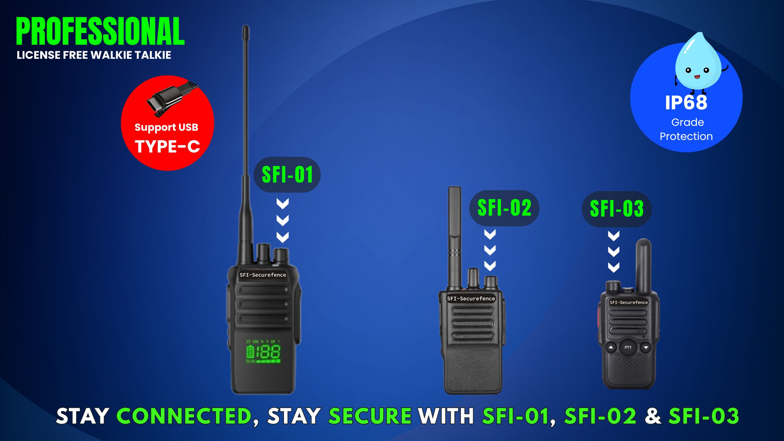 At SFI SecureFence India, we specialize in delivering high-quality, license-free walkie-talkies designed for seamless communication and reliable performance. Our range includes the SFI-01 License-Free Walkie-Talkie, SFI-02 License-Free Walkie-Talkie, and SFI-03 Mini FM Transceiver, all engineered to meet the communication demands of modern businesses, security teams, event organizers, and industrial operations across India.