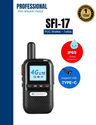 The SFI-17 POC Walkie Talkie is a powerful 4G-enabled communication device designed for seamless connectivity across long distances. Equipped with Bluetooth, GPS, and support for 2G/3G/4G networks, this POC radio ensures stable and uninterrupted communication for security teams, industries, events, and field operations.