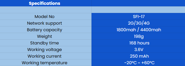 Built with a high-capacity 5000 mAh Li-ion battery, the SFI-17 delivers extended usage, while its power-saving mode enhances efficiency during long shifts. The device includes a built-in SIM card, crystal-clear audio output, and a WCDMA working frequency, ensuring consistent voice quality even in challenging environments.